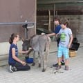 Auf unserem Hof leben viele artgerecht gehaltene Tiere: Pferde, Esel, Katzen, wollige Walliser Schwarznasenschafe und handzahme Kune Kune Schweine. Alle Tiere dürfen bei uns alt werden und bis an ihr Lebensende bei uns bleiben.